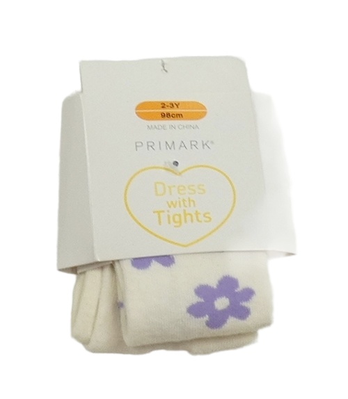Nové - smotanové pančuchy s fialovymi kvety PRIMARK