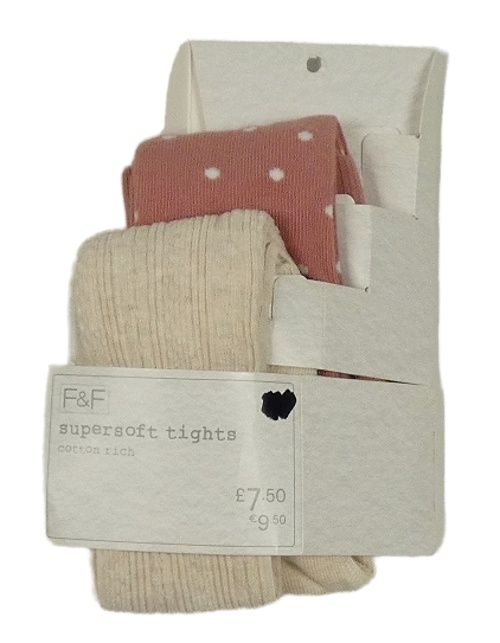 Nové - 2x - Smotanové + ružové pančuchy s bodkami F&F