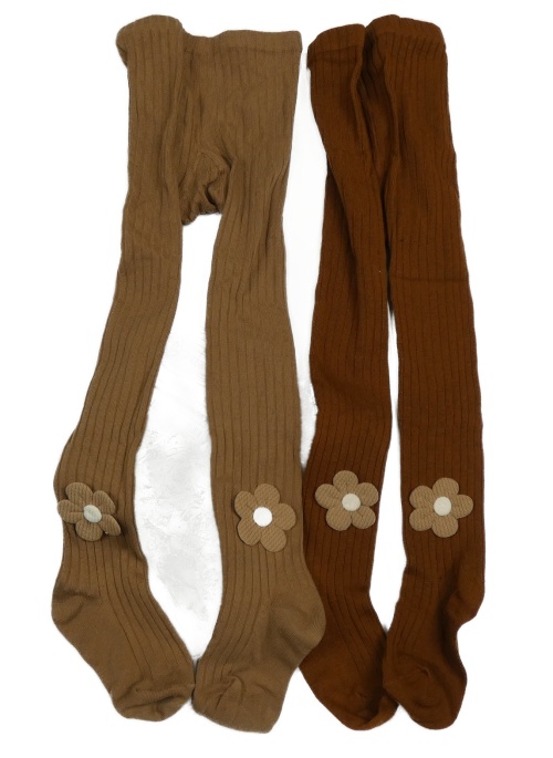 Nové - 2x - Béžové + hnedé rebrované pančuchy s kvetmi