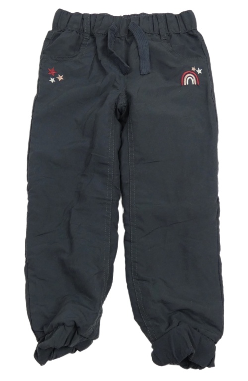 Tmavosivé cuff šušťákové podšité nohavice s dúhou a hviezdičkami Topolino