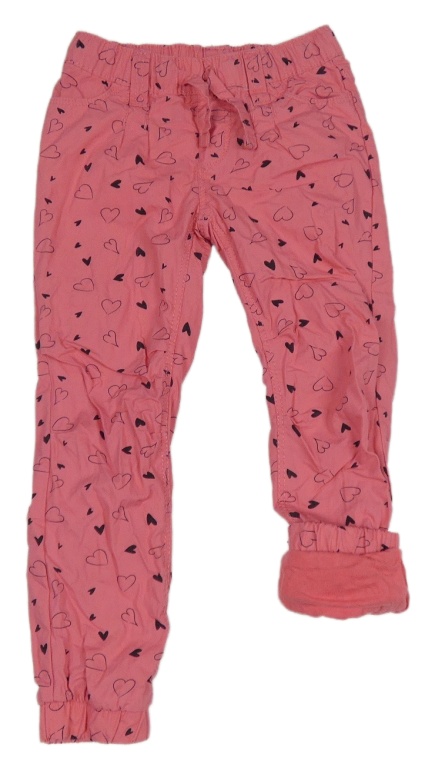 Ružové cuff plátenné podšité nohavice so srdiečkami Kiki&Koko