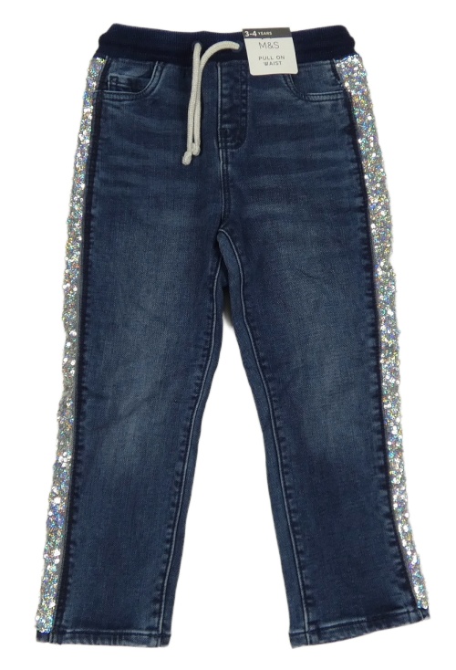Nové - Tmavomodré teplákové rifle s úpletovým pasom a trblietavymi pruhmi M&S