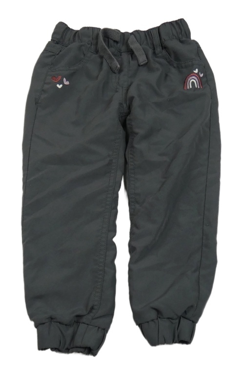 Tmavosivé šušťákové zateplené nohavice s dúhou a srdiečkami Topolino