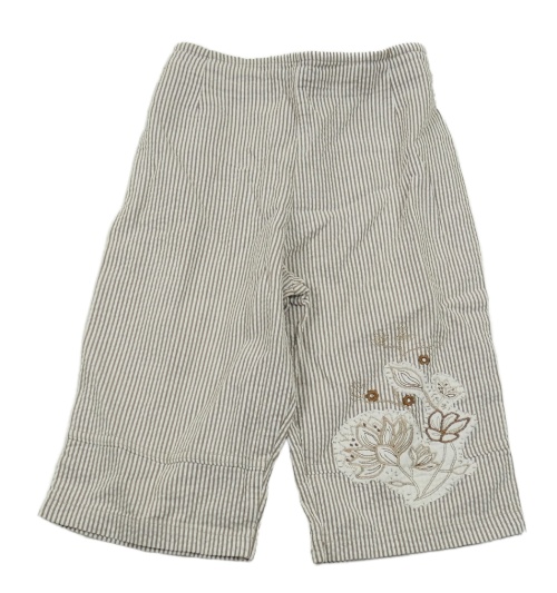 Béžovo-biele pruhované ľahké crop nohavice s kvetinou