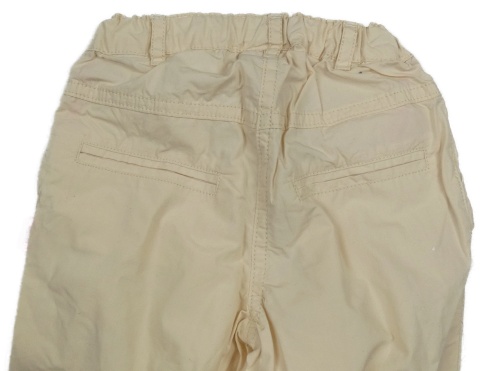 Vanilkové chino plátenné nohavice s kvietkami a vtáčikom a kamienkami a mašlou Pampolina