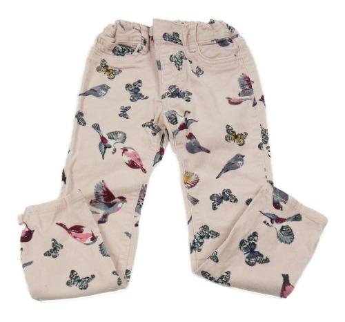 Ružové menšestrové elastické nohavice s motýly a vtáčky H&M