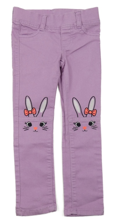 Lila plátenné elastické nohavice s králikmi
