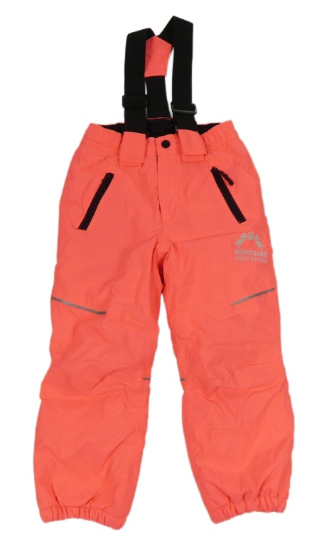 Neonově korálové šusťákové zimní oteplovačky s logom a odepínacími trakami Bodyguard
