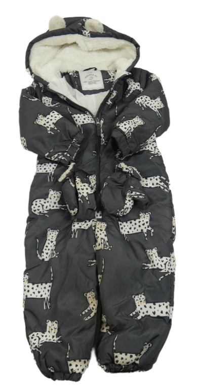 Antracitová šušťáková zimná kombinéza s mačkami a kapucí + rukavice George