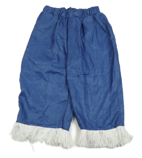 Modré šusťákové crop kalhoty riflového vzhledu s strapcemi