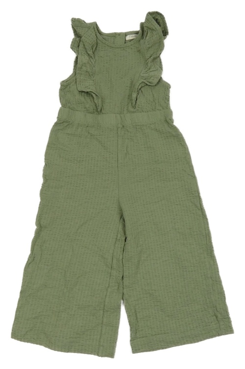 Khaki mačkaný nohavicový culottes overal s volánikmi Sfera