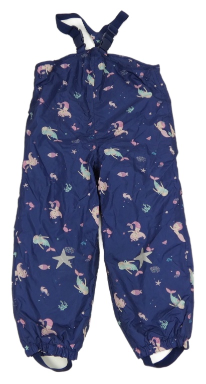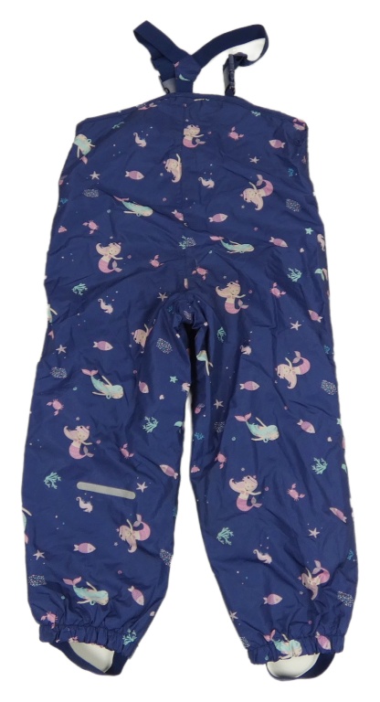 Tmavomodré šušťákové zateplené nohavice s mořskými pannami a trakami Pocopiano