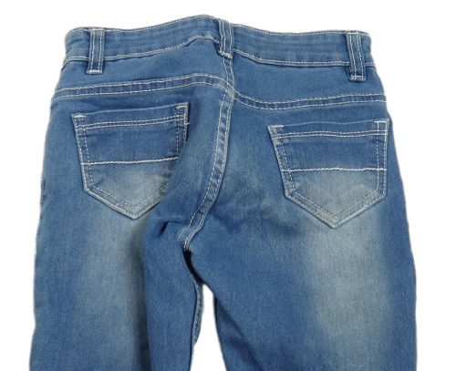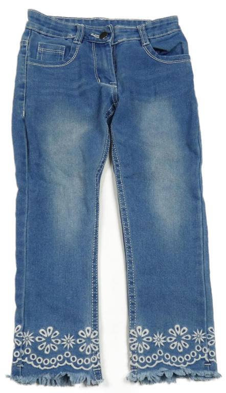 Modré rifle s výšivkami květů a motýlom