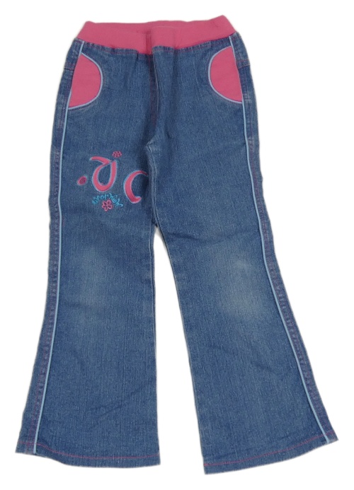 Modré flare rifle s výšivkou a ružovým úpletovým pasom