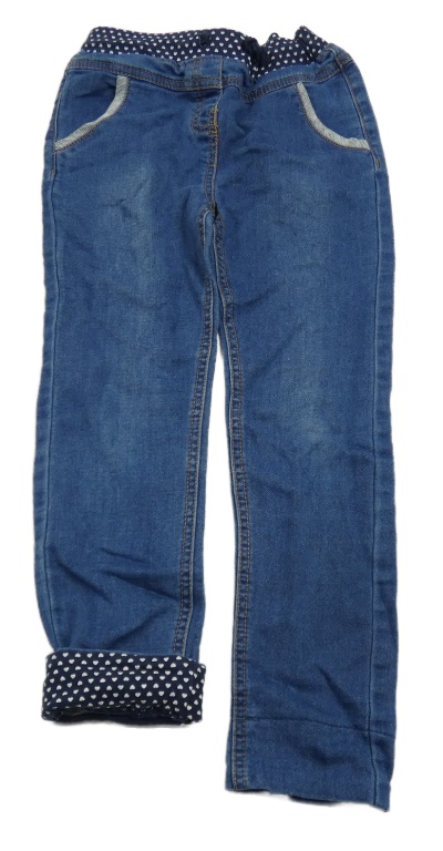 Modré teplákové rifle s úpletovým pasom so srdiečkami Topolino