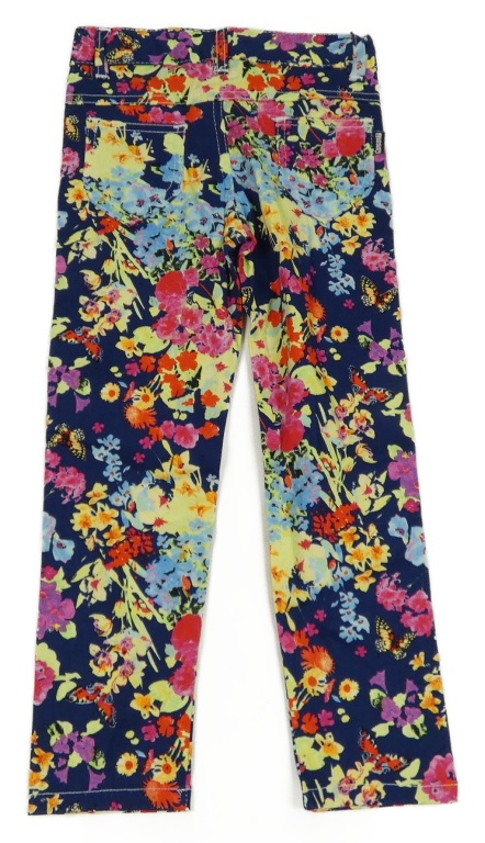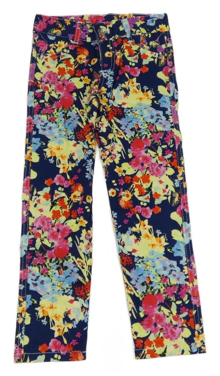 Tmavomodro-farebné kvetované plátenné nohavice