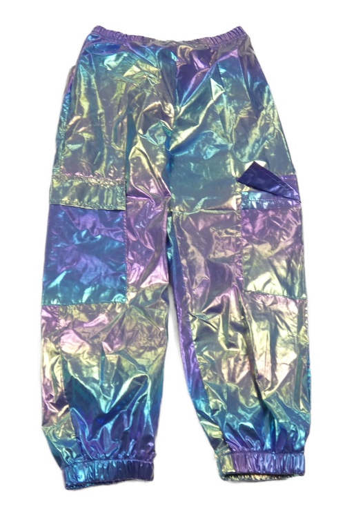 Modro-fialové metalické cargo cuff šušťákové nohavice