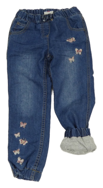 Modré cuff teplákové podšité rifle s motýlikmi a mašli Topolino
