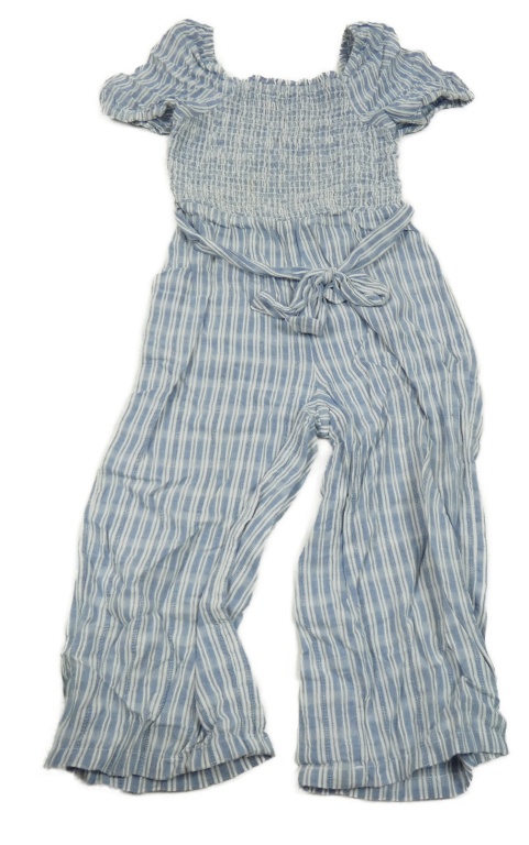 Světlemodro-biely pruhovaný nohavicový overal s opaskom F&F