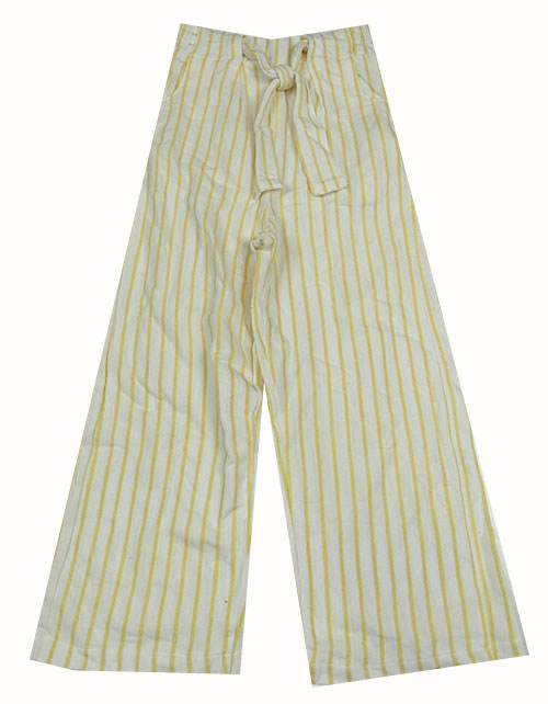 Bielo-žlté pruhované teplákové široké nohavice s opaskom Zara