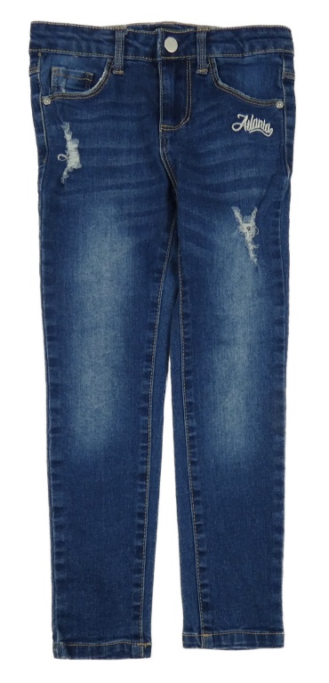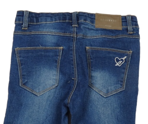Modré skinny teplákové rifle s nápisom a vyšúchaním RESERVED