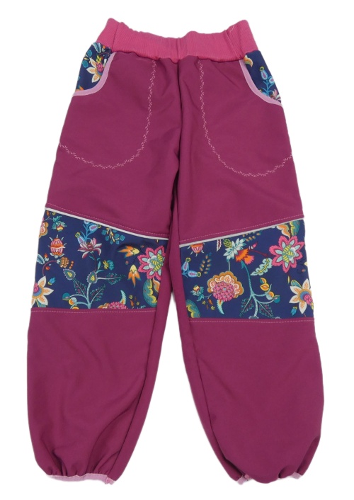 Vínovo-tmavomodré softshellové nohavice s kvetinami