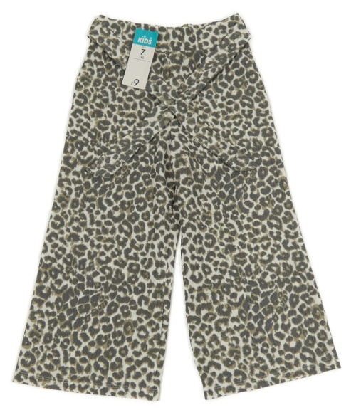 Nové - Bielo-tmavosivé culottes nohavice s leopardím vzorom a opaskom Matalan