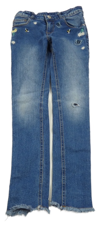 Modré skinny rifle s výšivkami motýlků