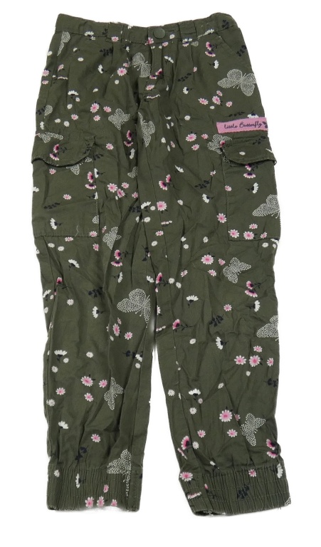 Tmavozelené kvetované plátenné nohavice s motýly a vreckami