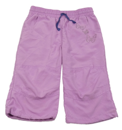 Levandulové šušťákové capri nohavice s motýly
