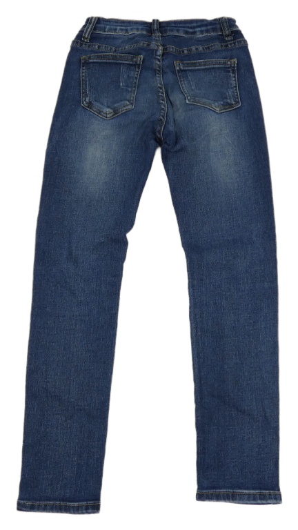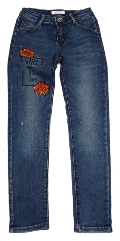 Tmavomodré skinny rifle s nápisom a kvetmi