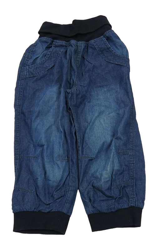Tmavomodré ľahké capri rifle s úpletovým pasom