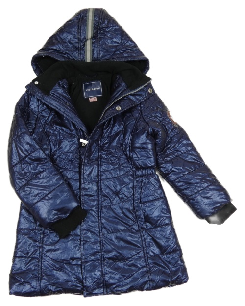 Tmavomodrý metalický prešívaný šušťákový zimný kabát ANDY&EVAN