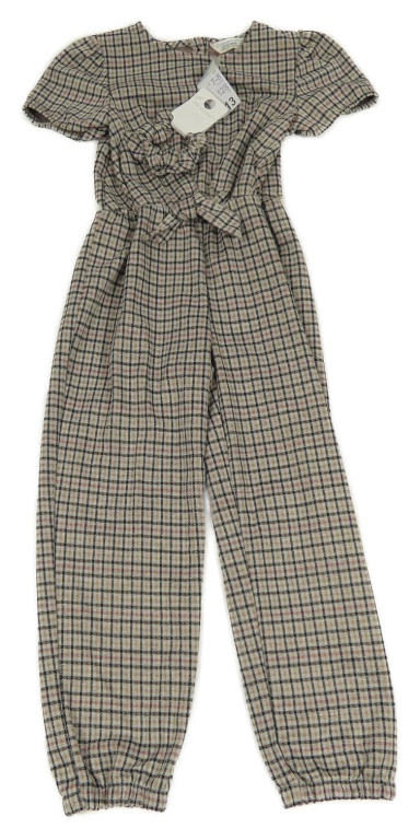 Nové - Šedo-černo-růžový kostkovaný úpletový kalhotový overal + gumička Primark