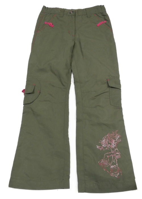 Khaki šušťákové podšité nohavice s dívkou x-mail
