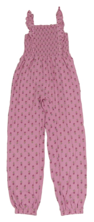 Ružový kvetovaný bavlnený nohavicový overal s volánikmi George