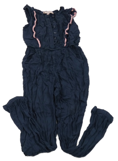 Tmavomodro-ružový nohavicový overal s volánikmi POCOPIANO