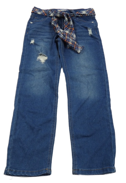 Tmavomodré straight fit rifle s vyšúchaním a stuhou v pase Walllflower girl