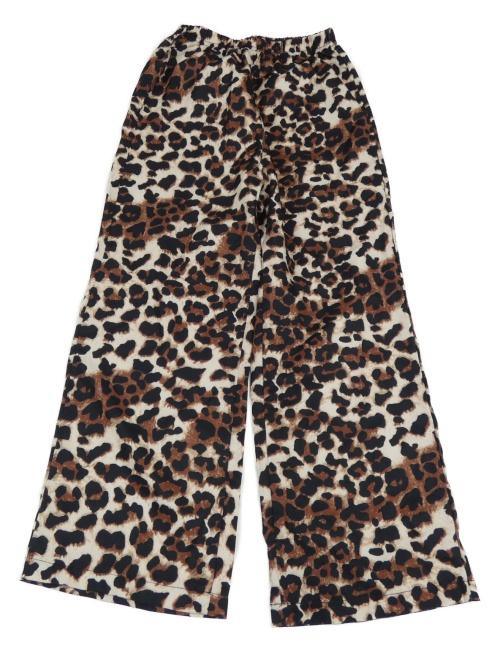 Pudrovo-tmavohnědo-čierne vzorované ľahké nohavice