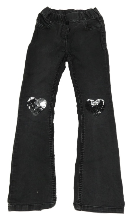 Antracitové teplákové flare džegíny so srdíčky z překlápěcích flitrů C&A
