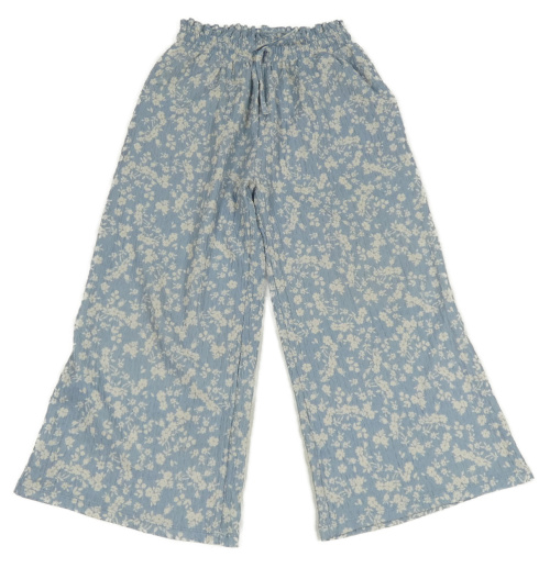 Svetlomodré mačkané široké paper bag nohavice s kvietkami Next