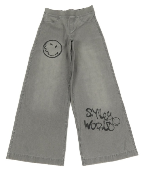 Šedé elastické široké kalhoty riflového vzhledu so smajlíkmi H&M