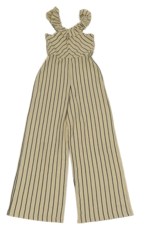 Světlebéžovo-čierny pruhovaný rebrovaný nohavicový overal s volánikmi C&A
