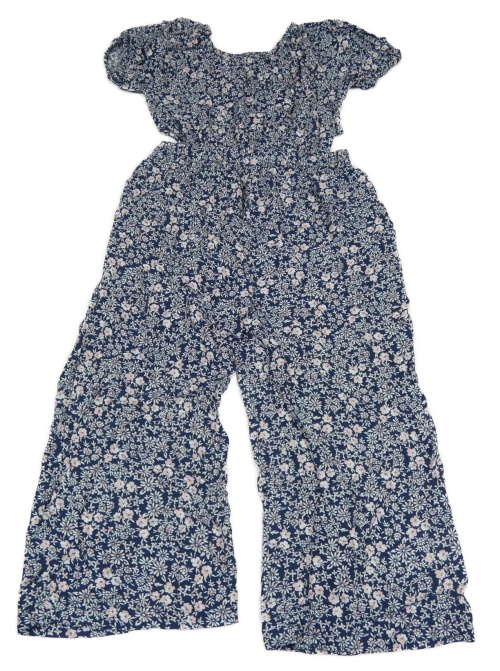 Tmavomodro-ružovo-biely kvetovaný nohavicový overal s prestrihmi Next
