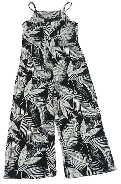 Čierno-biely rebrovaný nohavicový culottes overal s lístečky H&M