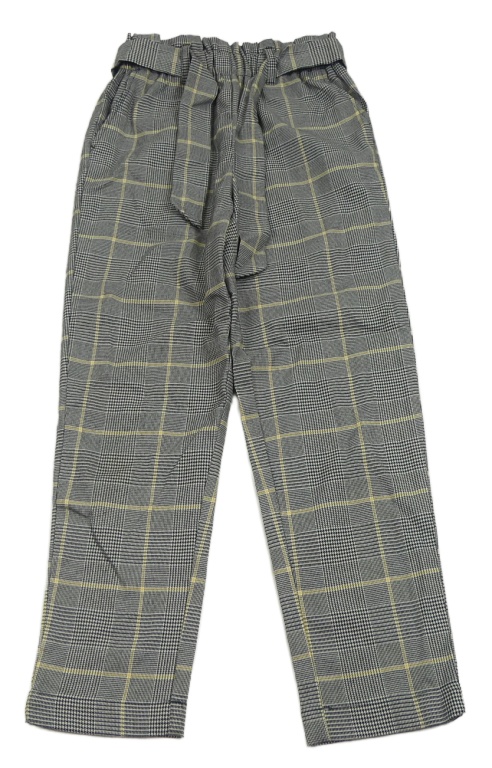 Bielo-čierno-žlté vzorovano/kostkované nohavice s opaskom