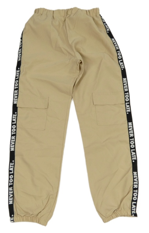Béžové šušťákové nohavice s pruhom s nápismi