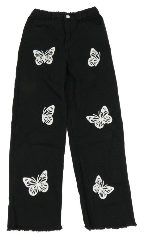 Čierne široké rifle s motýlikmi Shein