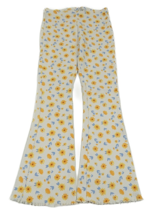 Smotanové rebrované flare nohavice s kvietkami C&A
