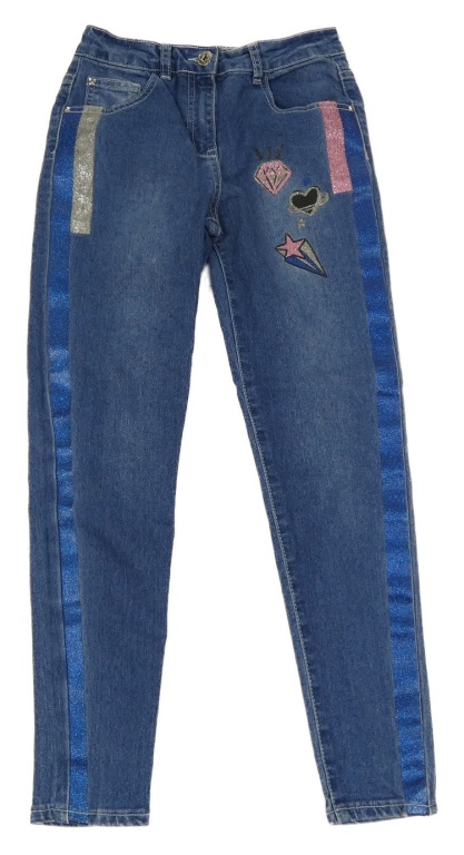 Modré skinny rifle s drahokamy a trblietavymi pruhmi George